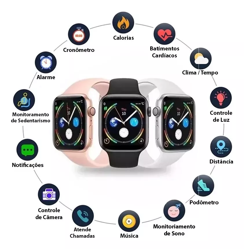 Notificações inteligentes para se manter conectado: Receba notificações de chamadas, mensagens, e-mails e redes sociais diretamente no seu smartwatch. Fique sempre conectado com o que importa sem precisar tirar o celular do bolso.